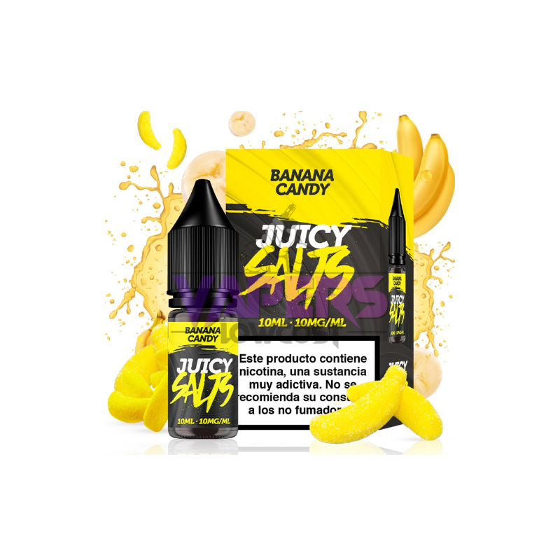 Déjate llevar por el dulce y nostálgico sabor de Banana Candy de Juicy Salts. Este e-líquido captura la esencia de los caramelos de plátano que tanto amamos.