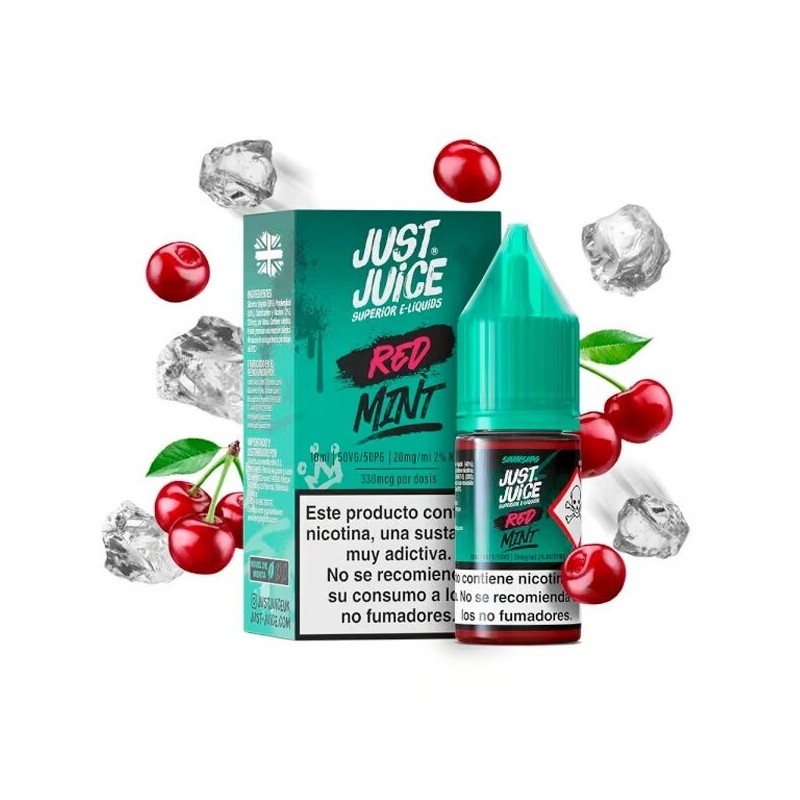 Red Mint de Just Juice te permiten experimentar una frescura en su máxima potencia gracias a una increíble mezcla de hielo, mentol y cereza. Cada inhalación proporciona una explosión de frescura que revitalizará tus sentidos, ofreciendo una experiencia de vapeo refrescante e inolvidable