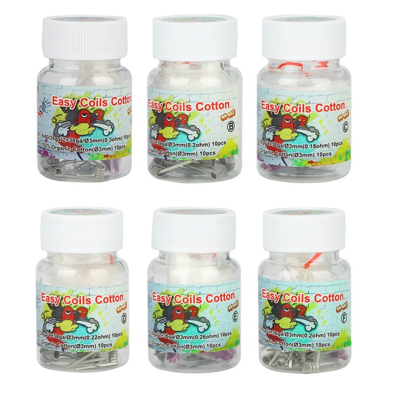 Easy Coils Cotton-10 de Lvs Vape es un set ideal para los amantes del bricolaje. Incluye 10 resistencias de tipo Fused Clapton fabricadas en N80/N90, junto con 10 tiras de algodón orgánico de alta calidad para asegurar una experiencia de vapeo pura y eficiente. El algodón utilizado es 100% orgánico, lo que mejora la absorción y proporciona un sabor más auténtico.
